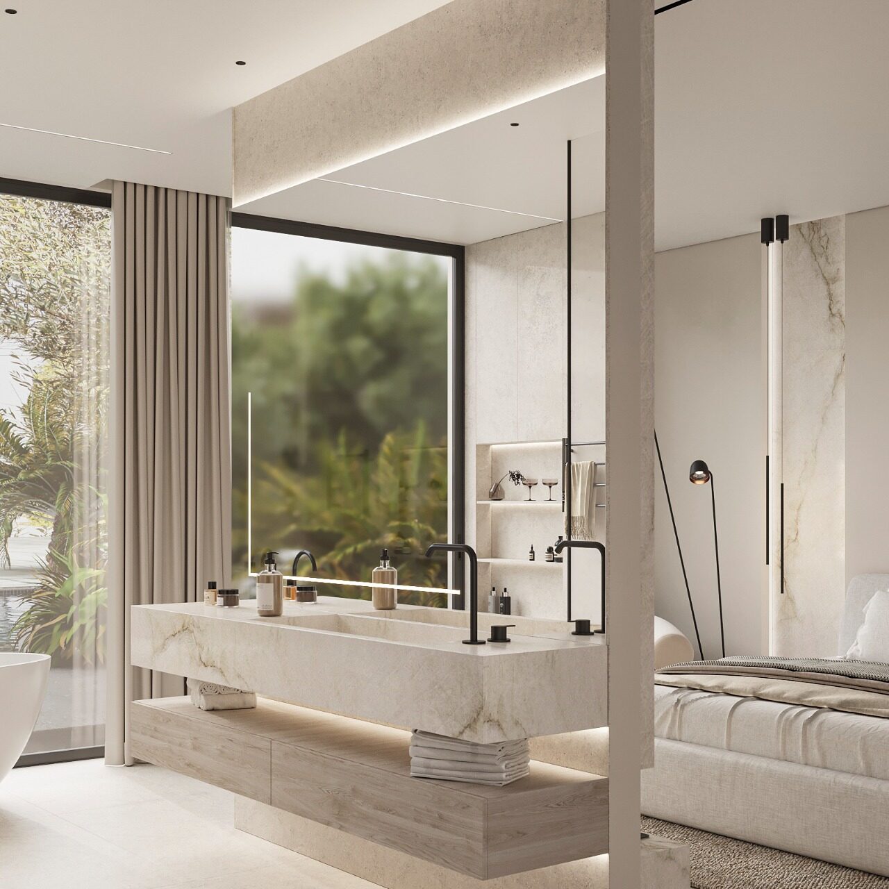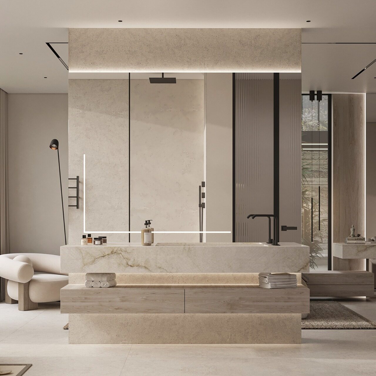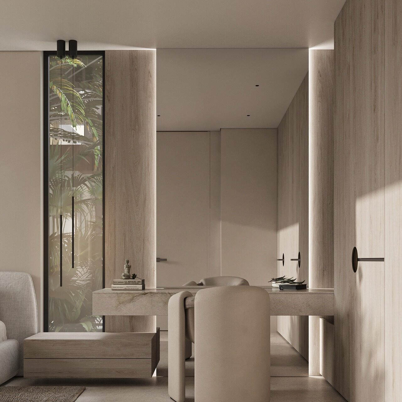 🎨 Earth-toned materials and a minimalist interior aesthetic